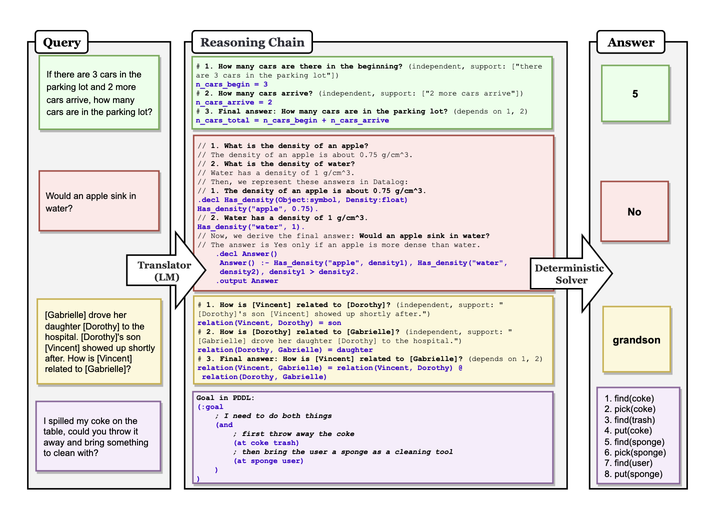 - Planning : When trying to generate a plan to solve a user query, they generate a list of symbolic goals in a Programming Language and then call a PDDL Planner to obtain a plan to solve the user's query